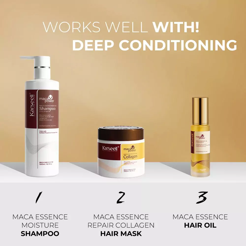 - Karseell Collagen Hair Mask-Pure Nature treatment hair mask penetrates deep from root to tip help restore damage from chemicals, sun exposure and pollution.